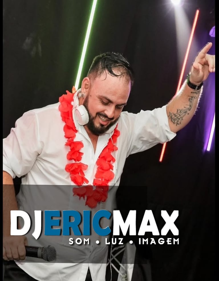 Com mais de 15 anos de atuação em sonorização, iluminação e imagem, o DJ Eric Max combina sua paixão pela música com atenção total ao gosto de cada cliente, criando playlists que vão dos clássicos dos anos 70 aos hits atuais para manter a pista sempre cheia do início ao fim.